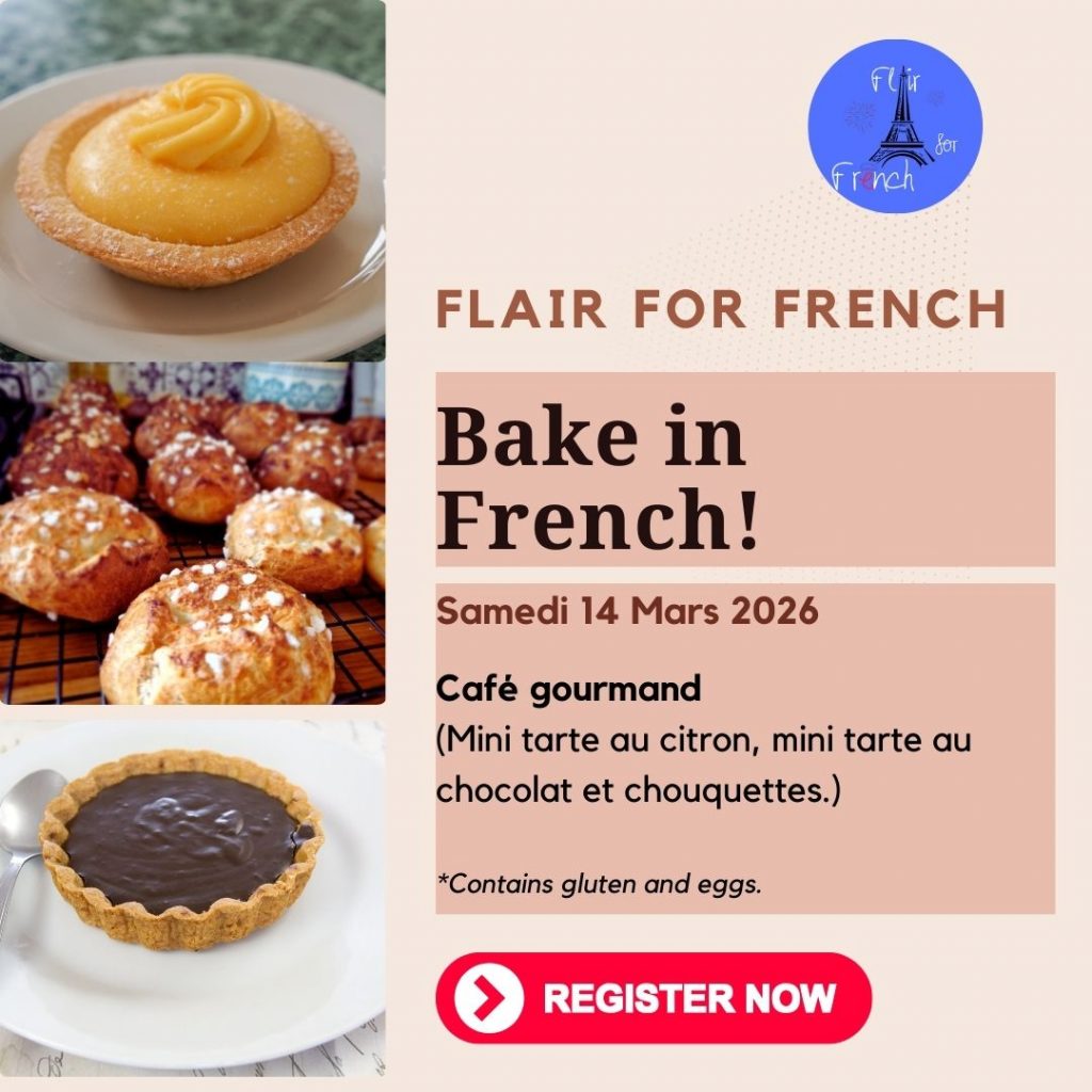 At the end of the session you will of course have the opportunity to enjoy your bake around coffee / tea and to practise even more French!